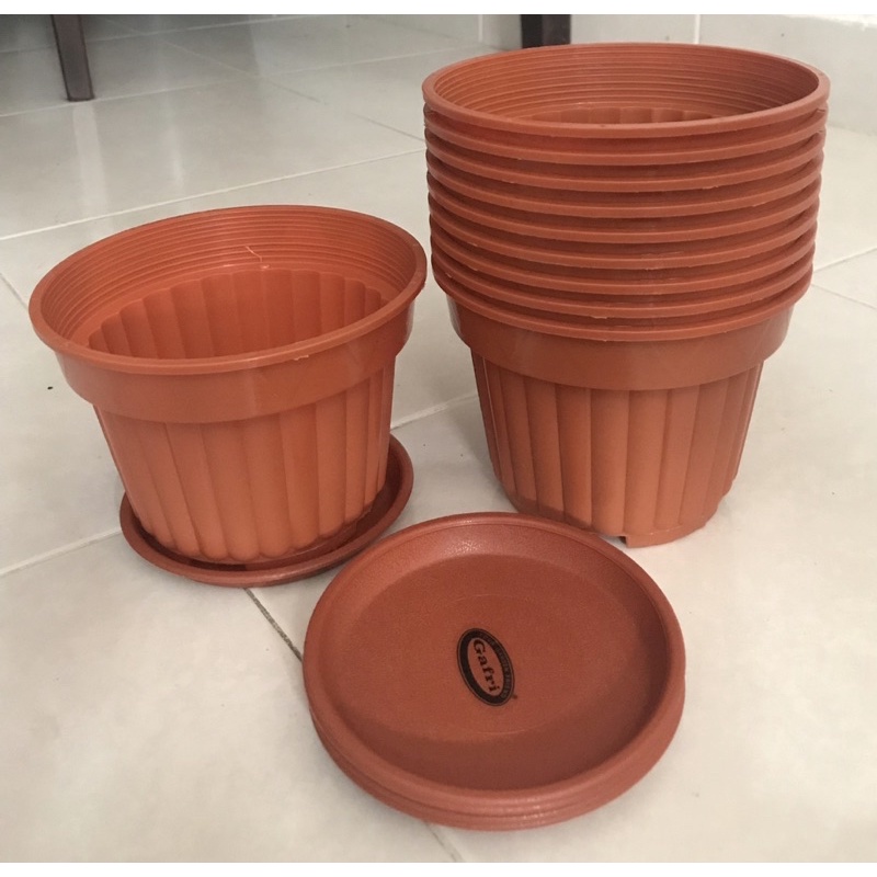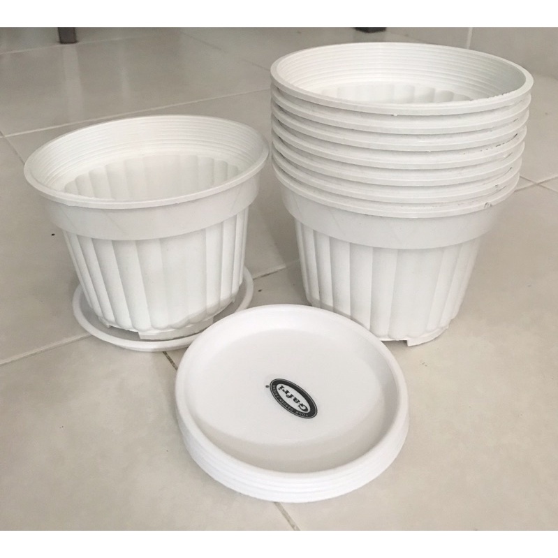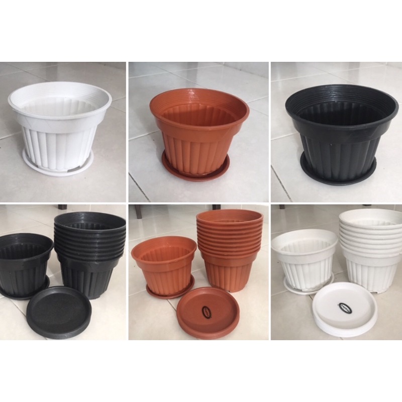 PASU SAIZ KECIL 12CM (4.7 inci) dan 14.7CM ( 5 inci lebih) PASU BUNGA PLASTIK putih , koko dan hitamSEKALI PELAPIK