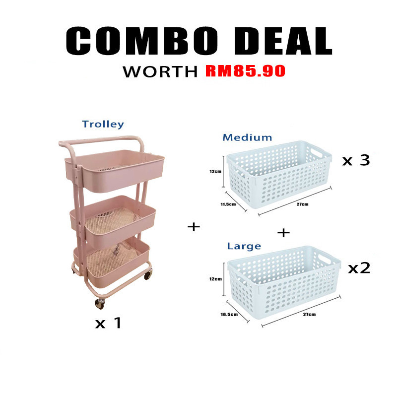 PATTERN 3 Tier Trolley Multifunction Storage Rack with Handle | 100% Full Steel Metal Trolley | Kitchen Rack | Troli
