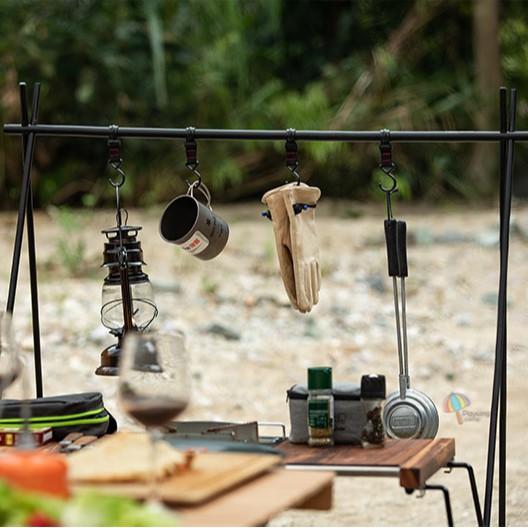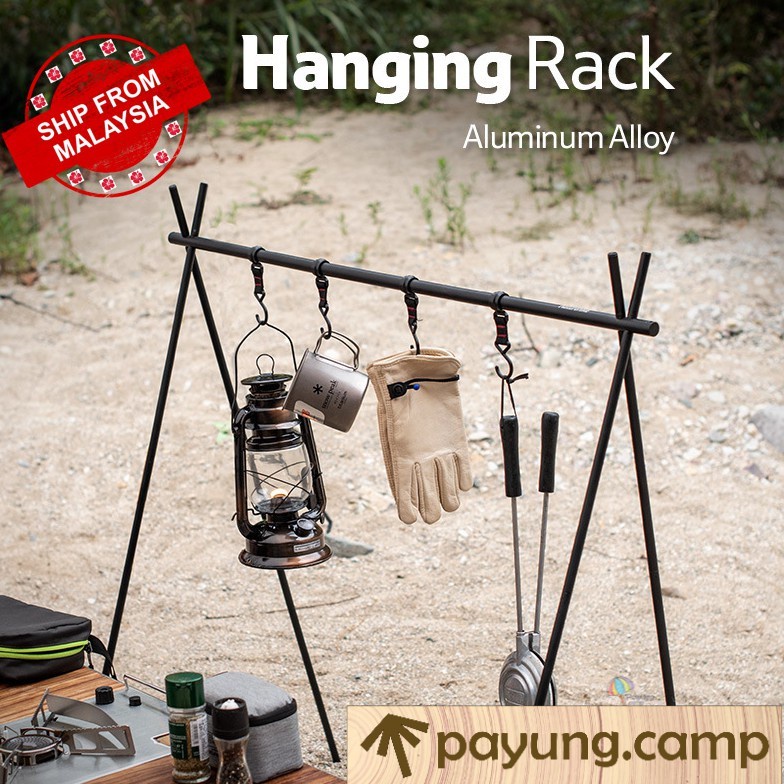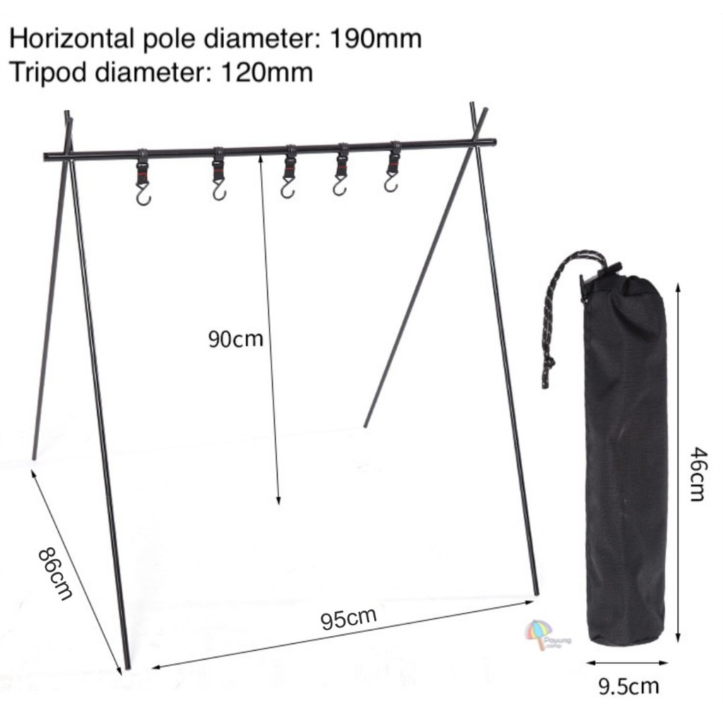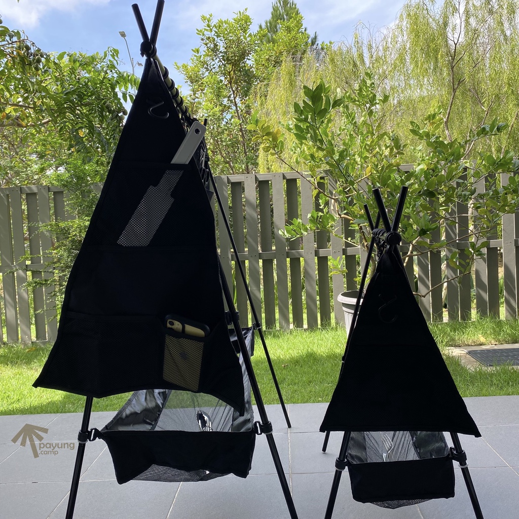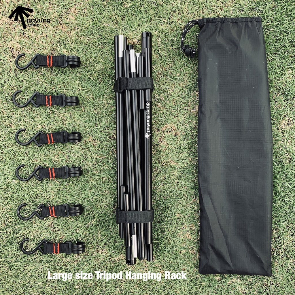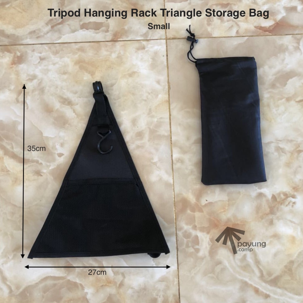 PAYUNG.CAMP Camping Triangle Hanging Rack Hanger Tripod Shelf Stand Storage Mesh Bag Cookware Tableware Organizer