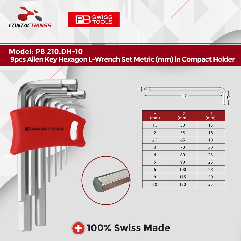PB SWISS TOOLS 9pcs Allen Key Hexagon L-Wrench Set Metric (mm) in Compact Holder PB 210.DH-10
