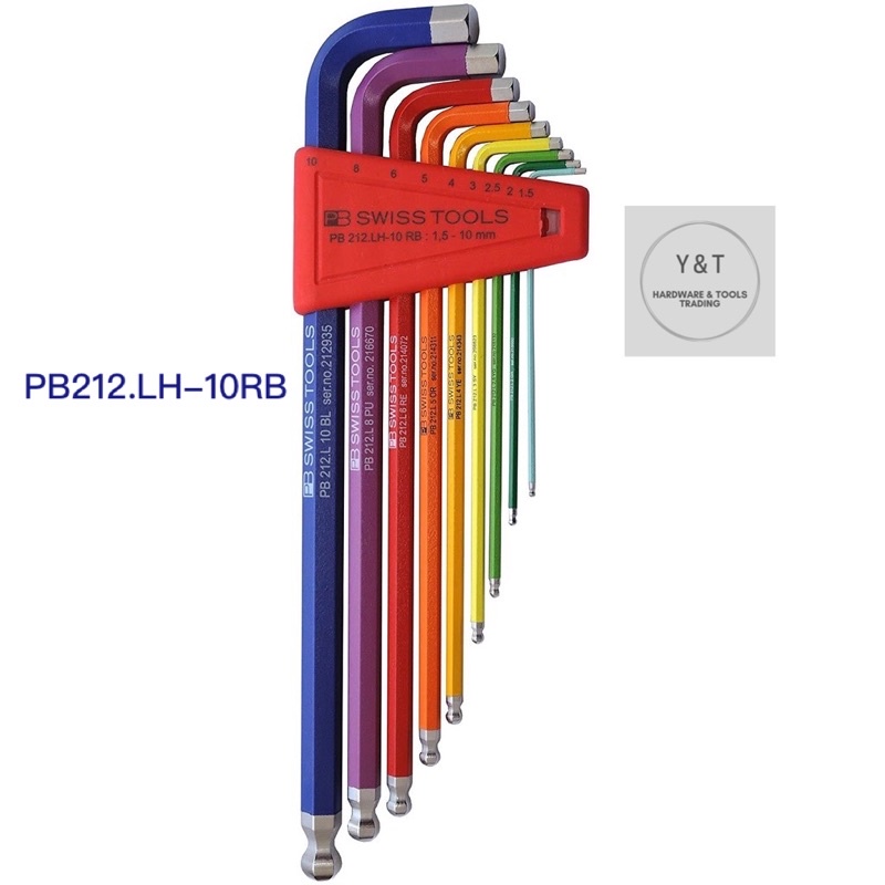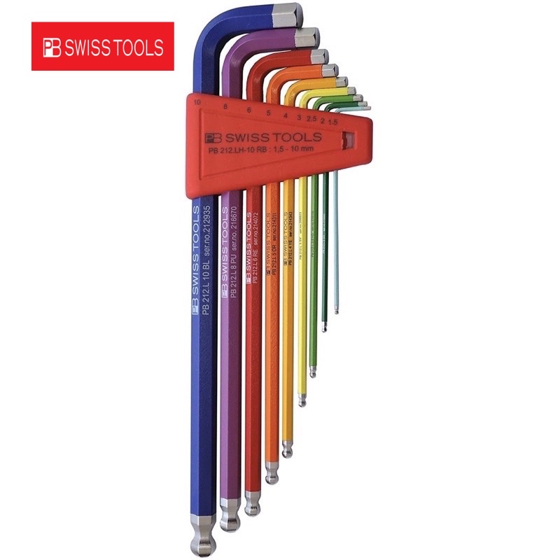 PB SWISS TOOLS 9pcs Hexagon Allen Key L-Wrench Set, Long, With Ball Point (mm) (Rainbow), PB 212.LH-10 RB