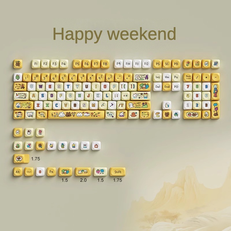 PBT Dunhuang Little Panda Keycaps Colorful Cute Cartoon OQO Height Square Dye Sublimation Rounded Ball Cap Adaptable To 61/63/64/67/68/71/75/78/82/84/87/96/98/100/104/108