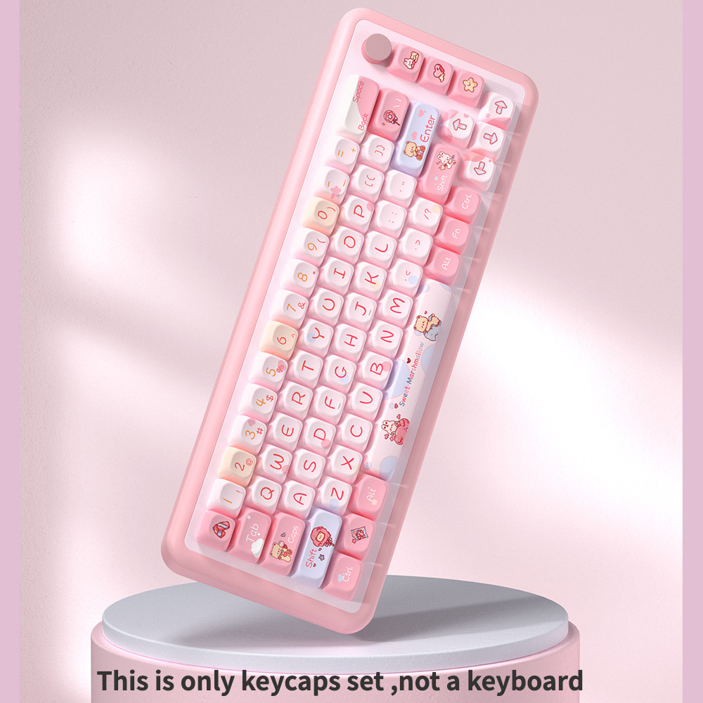 PBT Pink Sweet Cotton Candy Original Theme Keycaps SCA Height Cute Girls Personalized Creative Keyboard Caps Adaptable To 61/63/64/67/68/71/75/78/82/84/87/96/98/100/104/108