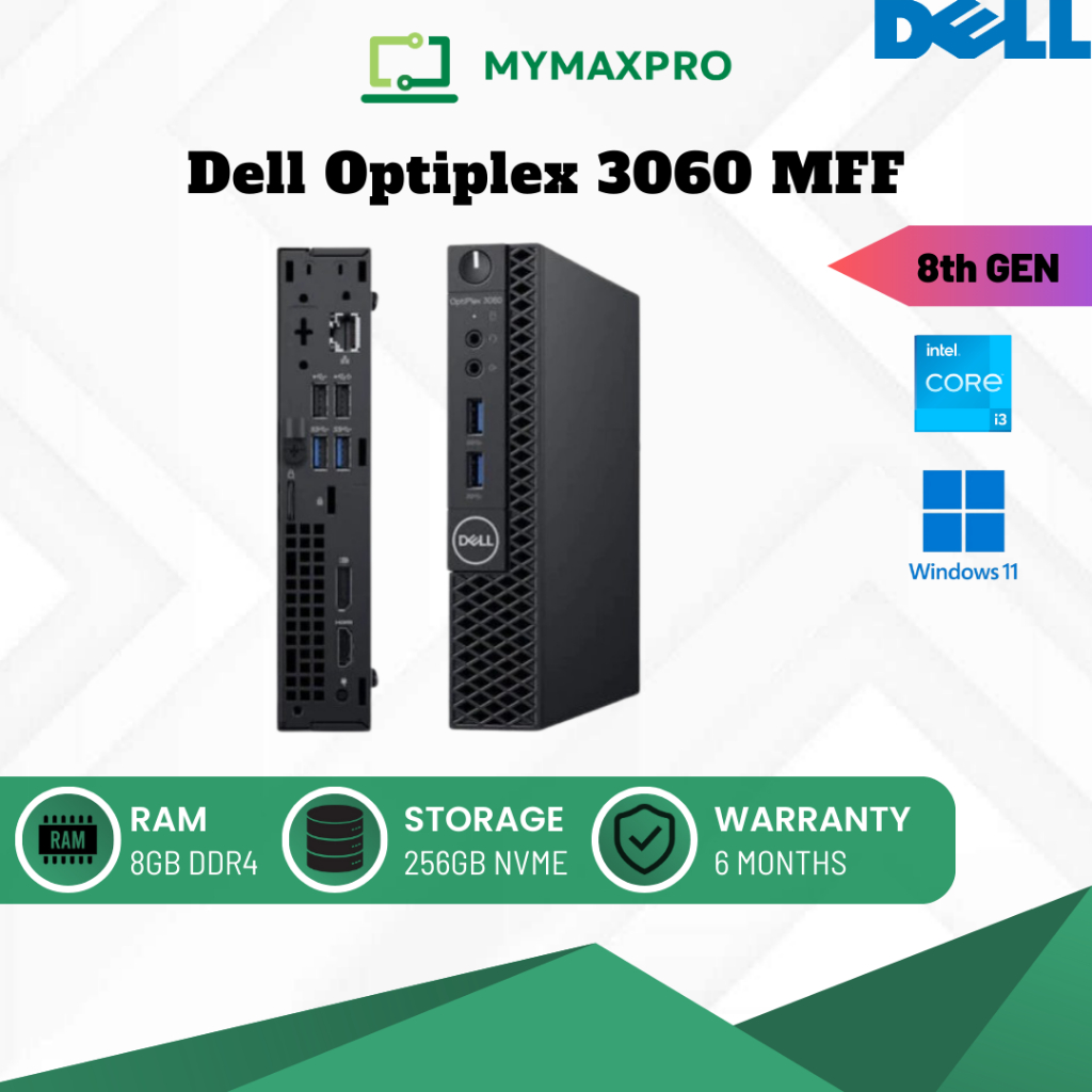 PC i3 Dell Optiplex 3060 MFF Intel Core i3 (8th Gen) / 8GB RAM / 256GB NVME / Win 11 Pro (Refurbished PC)