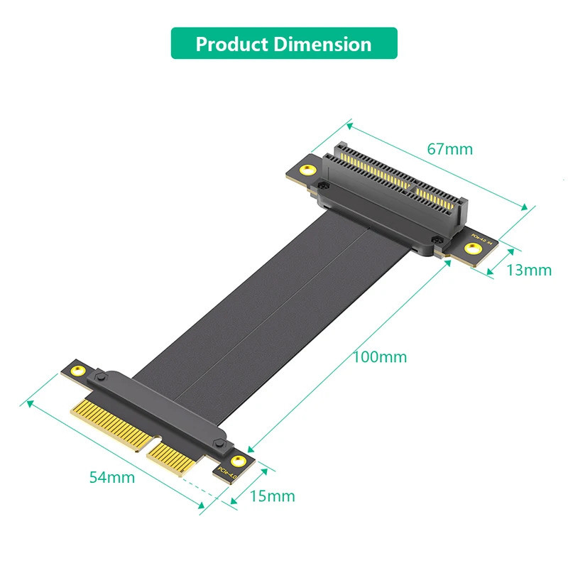 PCIe 4.0 X4 Riser Cable PCI Express GEN4 4X to 4X Extension Cable Vertical 90 Degrees for Graphics Card SSD Motherboard Extender