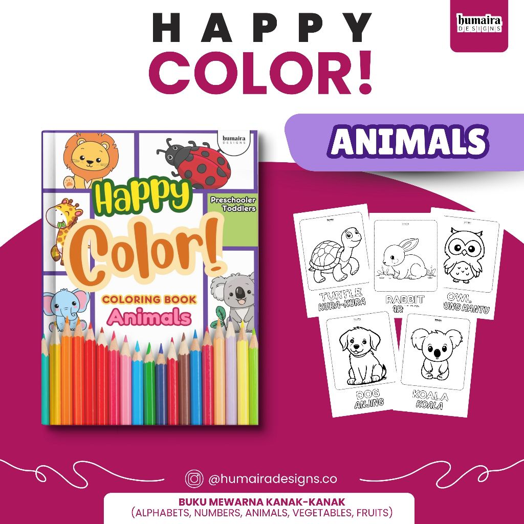 Buku Mewarna Kanak-Kanak A5 (28 Pages) – Dwibahasa BM & English, 5 Tema, Cover Laminate Premium