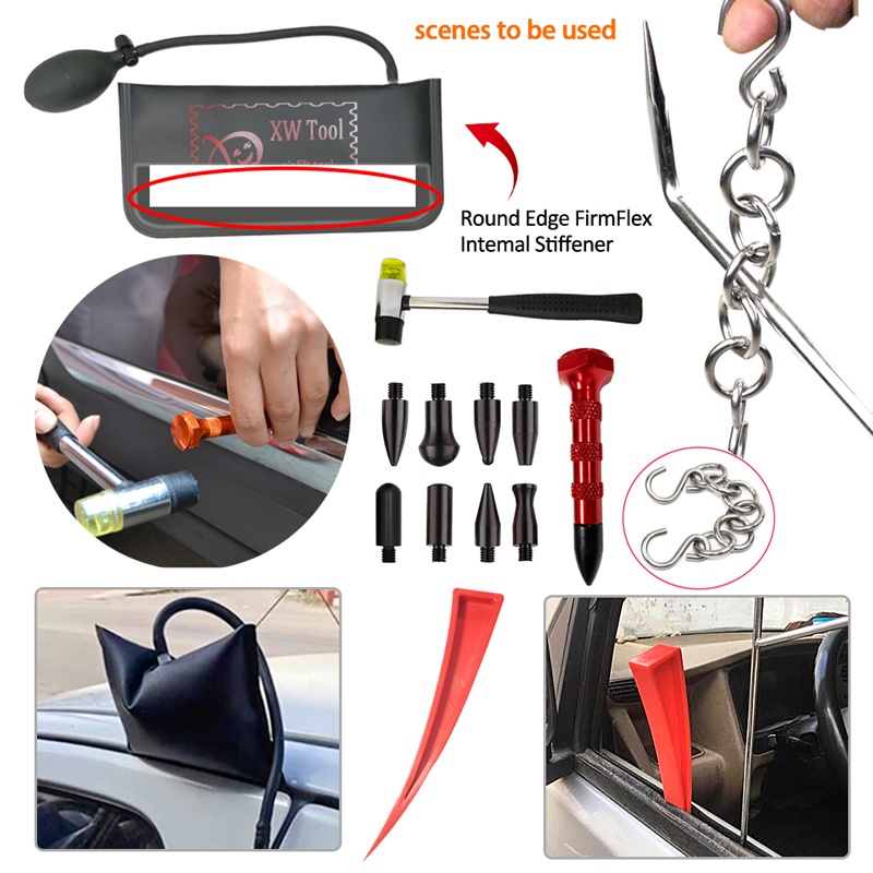 PDR Car Dent Repair Pry Bar Paintless Dent Repair Kit Tools Airbag Puller Leveling Pen Dent Repair Pry Bar Kit 28 pieces
