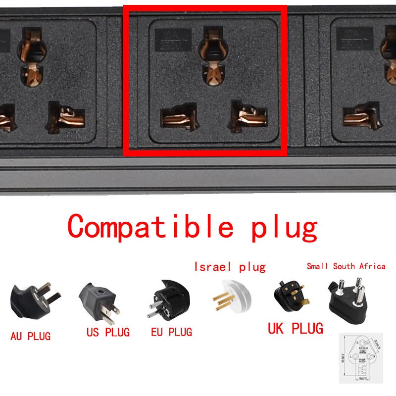 PDU Power Distribution Unit 2 & 18 Ways US 3 pin Universal Power Strip Socket (Extended wire 2M)