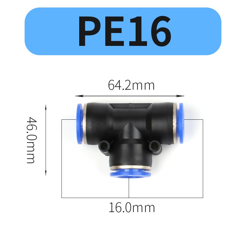 PEG PE T-shaped Three-Way Pneumatic Quick Coupling OD4-16mm Hose Plug-in Quick Coupling Adapter Air Compressor