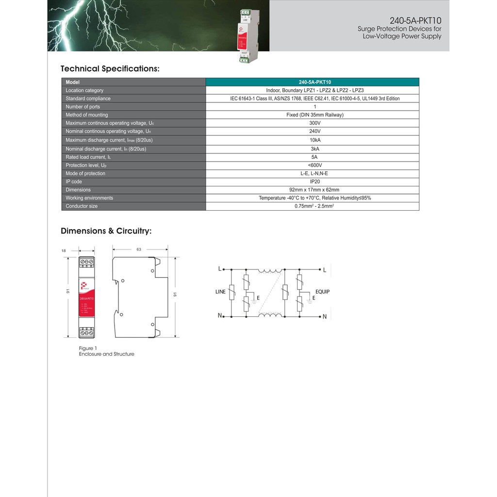 PEKAT SURGE PROTECTION DEVICES FOR LOW-VOLTAGE POWER SUPPLY 240-5A-PKT10