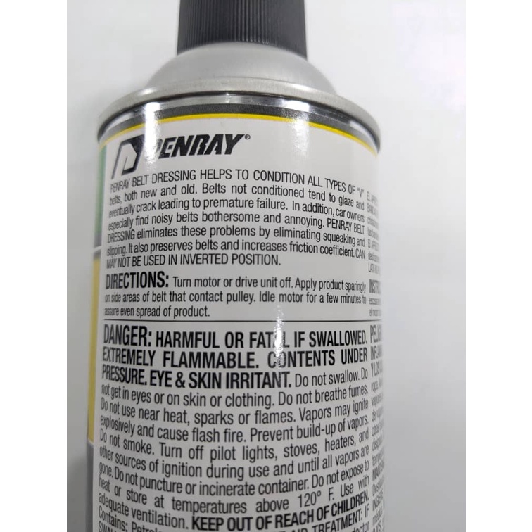 PENRAY 4908 BELT DRESSING SPRAY ELIMINATE V BELT SQUEAKING, CHATTER AND SLIPPING SOUND