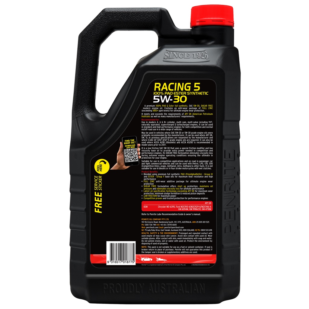 PENRITE 10 TENTHS RACING 5W-30 ( 5W30 100% PAO & ESTER) 5 LITERS FULL SYNTHETIC ENGINE OIL MINYAK ENJIN