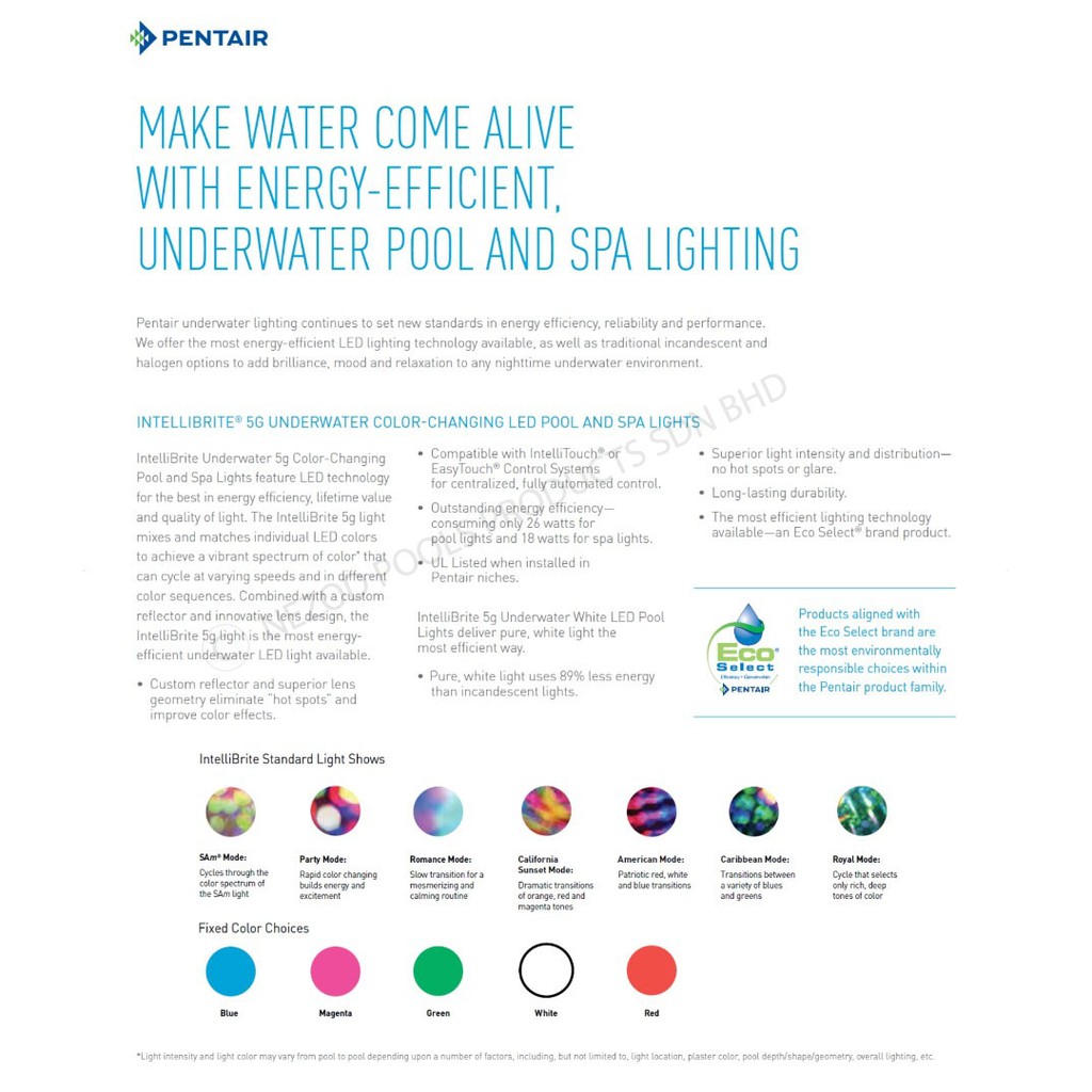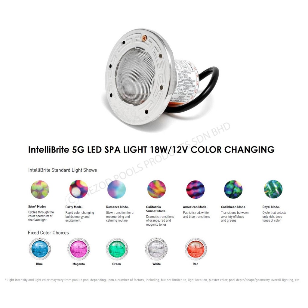 PENTAIR INTELLIBRITE 5G COLOR LED SPA LIGHT 18W/12V UNDERWATER LIGHT RGBW - SWIMMING POOL UNDERWATER LIGHT / NEZOD POOLS