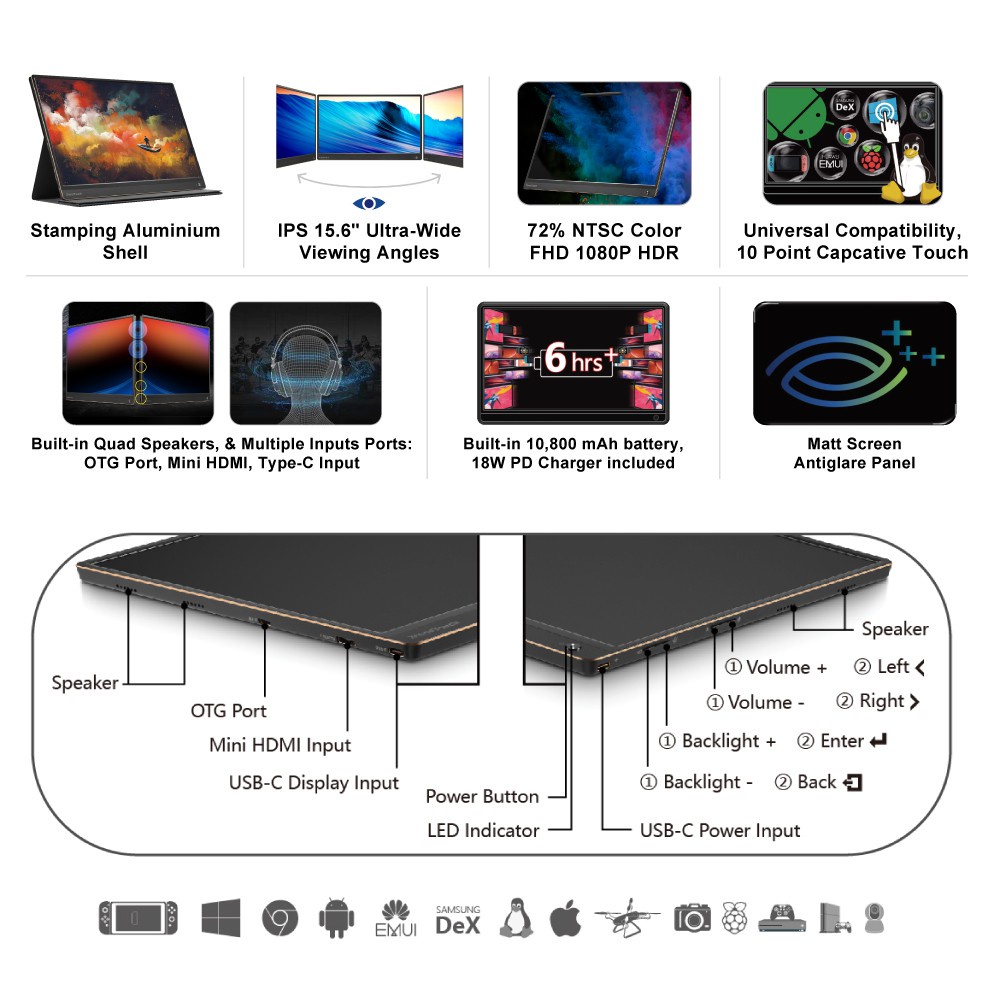 PEPPER JOBS Portable Monitor 15.6 inch USB C Type C HDMI IPS Laptop Monitor Mini Extended Screen PC Computer Desktop