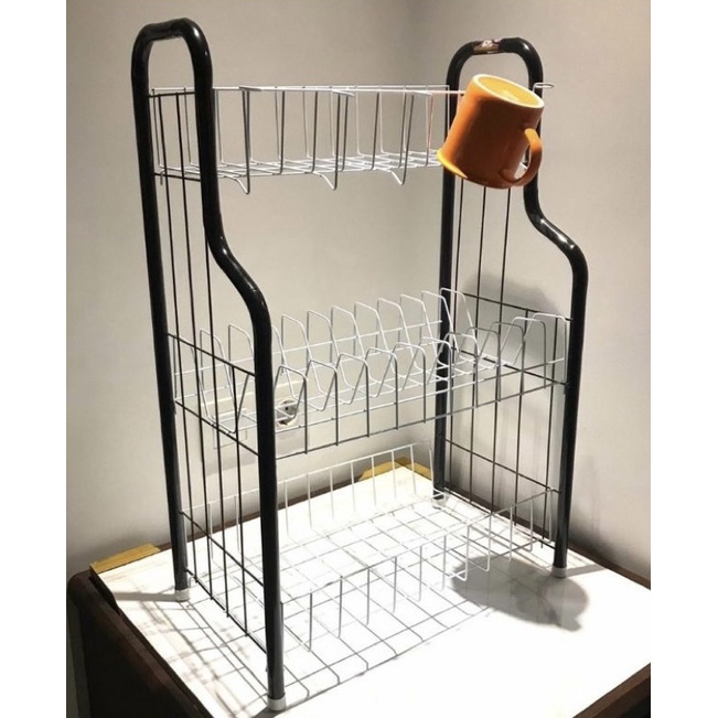 3-Tier Dish Rack RPL Kitchen Rack - 3-Tier Dish Rack - 3-Tier Kitchen Utensil Rack - 3 Tier Dish Drainer - Minimalist Stainless Steel Kitchen Sink Rack