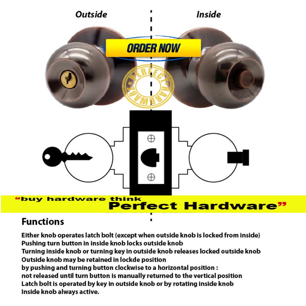 PERFECT CYLINDRICAL DOOR KNOB LOCK SET /CYLINDRICAL DOOR LOCK/TOMBOL pintu /tombol kunci