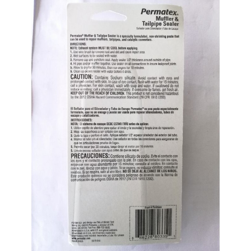 PERMATEX MUFFLER & TAILPIPE SEALER 85g EXHAUST PIPE GUM EXHAUST PIPE CEMENT