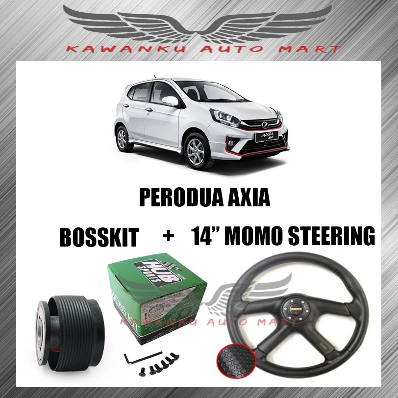 PERODUA AXIA 14'' MOMO STEERING WHEEL 4 SPOKE WITH BOSSKIT SET