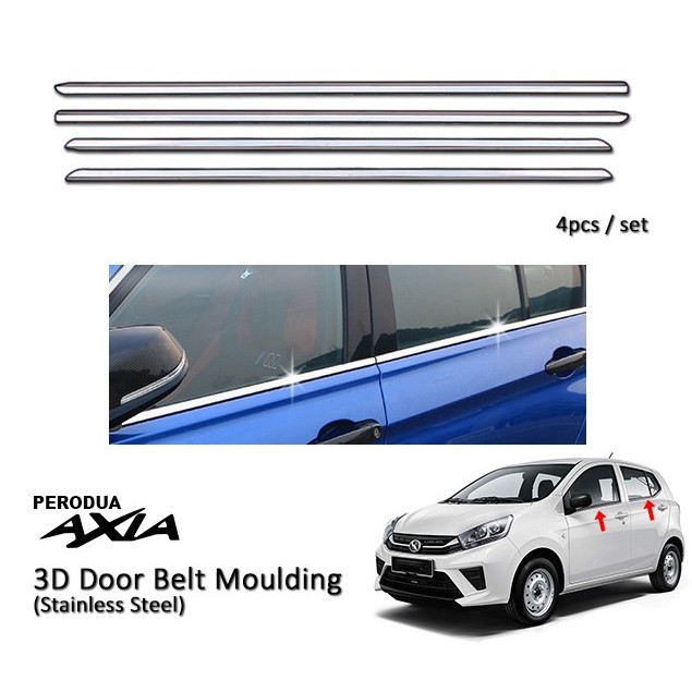 PERODUA AXIA CHROME Door Belt Moulding / Window Trim Lining / Chrome Sisi Pintu Kereta (4 PCS)