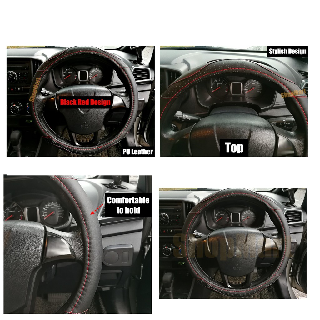 PERODUA AXIA Steering Wheel Cover Penutup Stereng Kereta PU Leather 6D Carbon 38cm Accessories