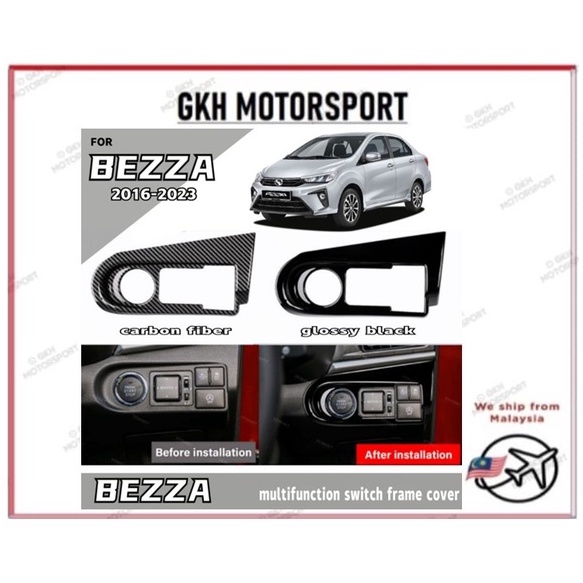 PERODUA BEZZA 2016 2017 2018 2019 2020 2021 2022 2023 Multi Function Switch Button Frame Cover Glossy Black Carbon Fibre