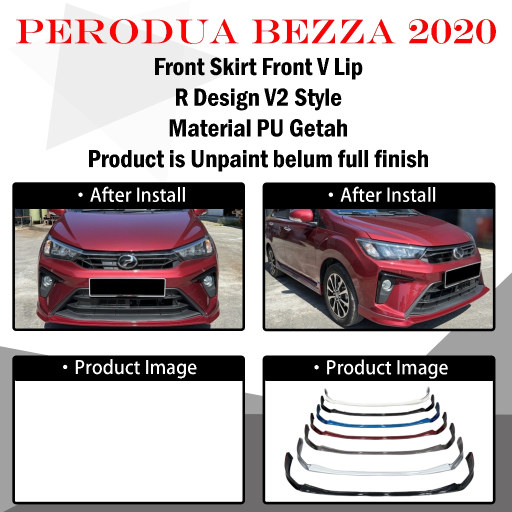 PERODUA BEZZA 2020 R DESIGN V2 STYLE FRONT V LIP BUMPER LIP UNPAINT-MATERIAL PU GETAH BODYKIT