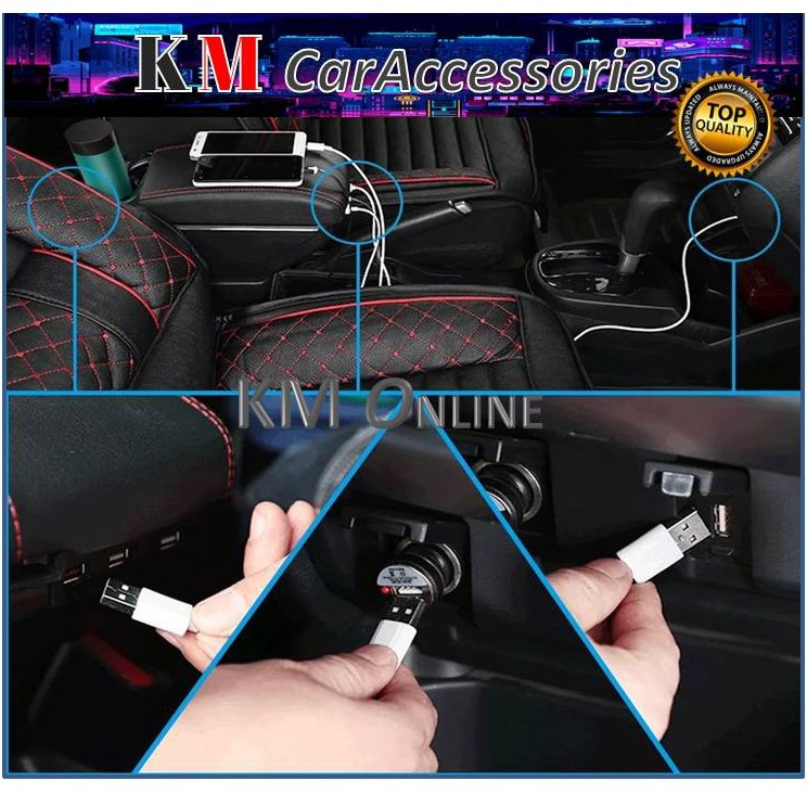 Perodua Bezza Adjustable Armrest Double Layer with 7 USB Ports PU Leather Car Storage Box