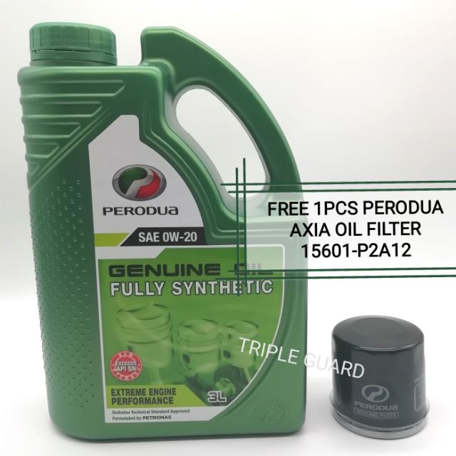 PERODUA FULLY SYNTHETIC 0W20 3L ENGINE OIL WITH PERODUA AXIA, BEZZA OIL FILTER(P2A12}