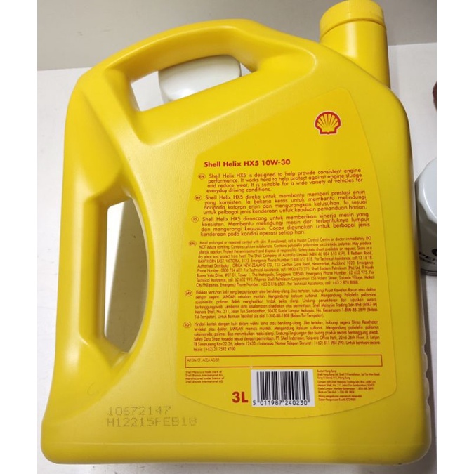 PERODUA Genuine New Packing 10W30 (3L) Shell Helix HX5 10W30 Semi Synthetic Engine Oil(3 liter)