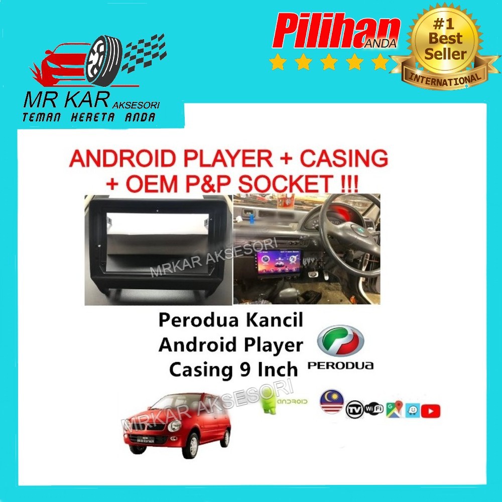 PERODUA KANCIL BIG SCREEN MEDIA PLAYER ANDROID 12 WITH CASING & OEM PLUG & PLAY SOCKET