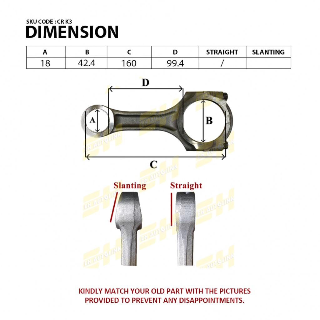 PERODUA/TOYOTA K3 (1.3cc) CONNECTING ROD (18mm-STRAIGHT)