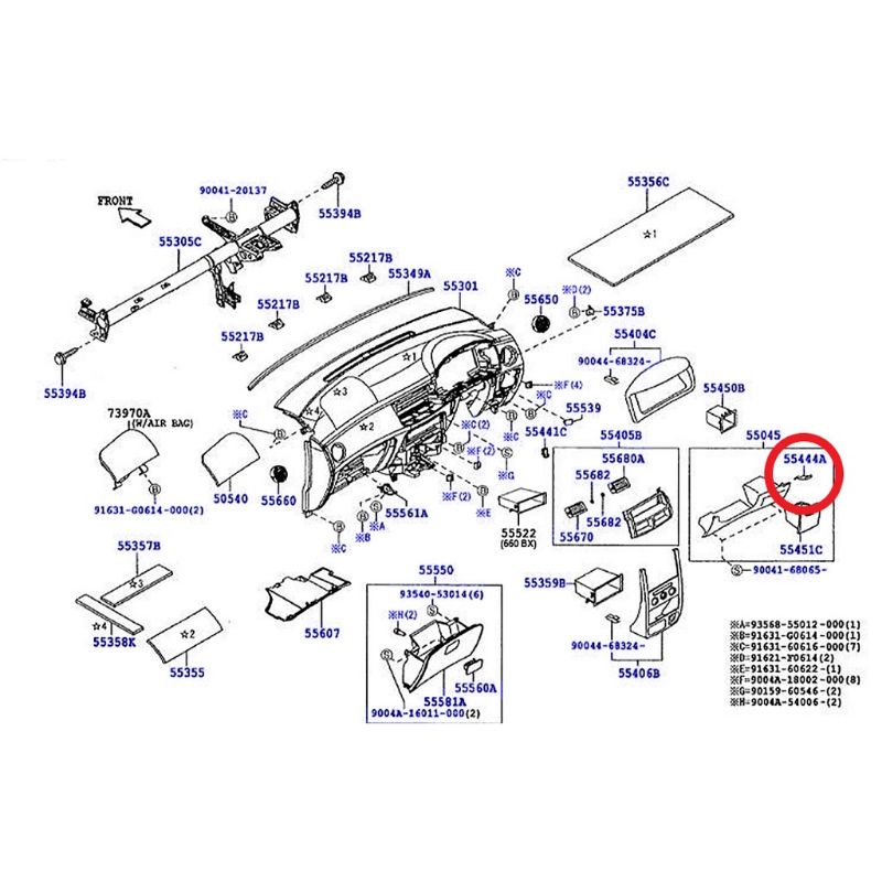 PERODUA VIVA INSTRUMENT PANEL BOX SPRING /INSTRUMENT PANEL BOX CENTER ORIGINAL 55444-BZ010