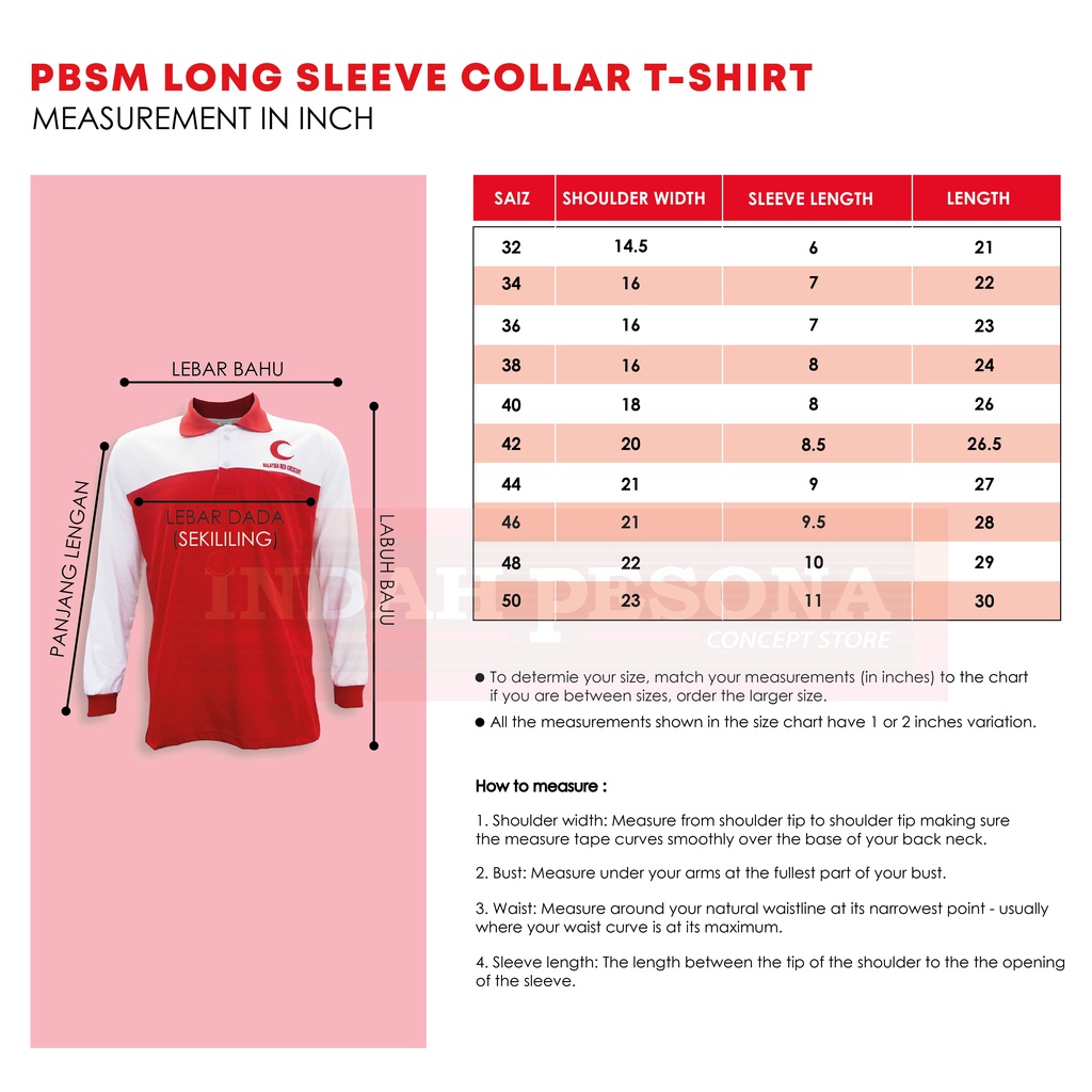 PERSATUAN BULAN SABIT MERAH LONG SLEEVE COLLAR T-SHIRT (PBSM)