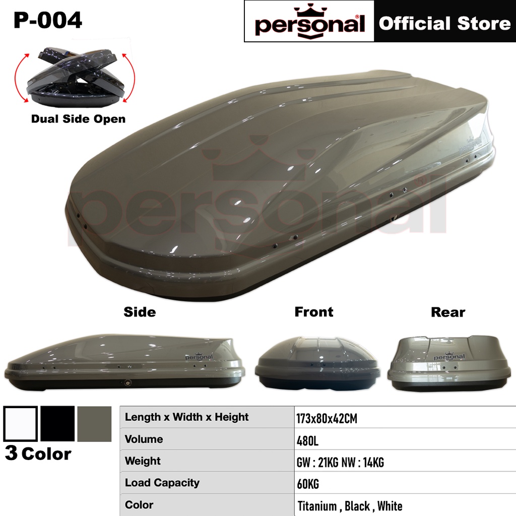 PERSONAL P-004 Car Roof Box PC Material (M Size 480L) Glossy Color Cargo Roofbox Carrier.Kotak Bumbung kereta