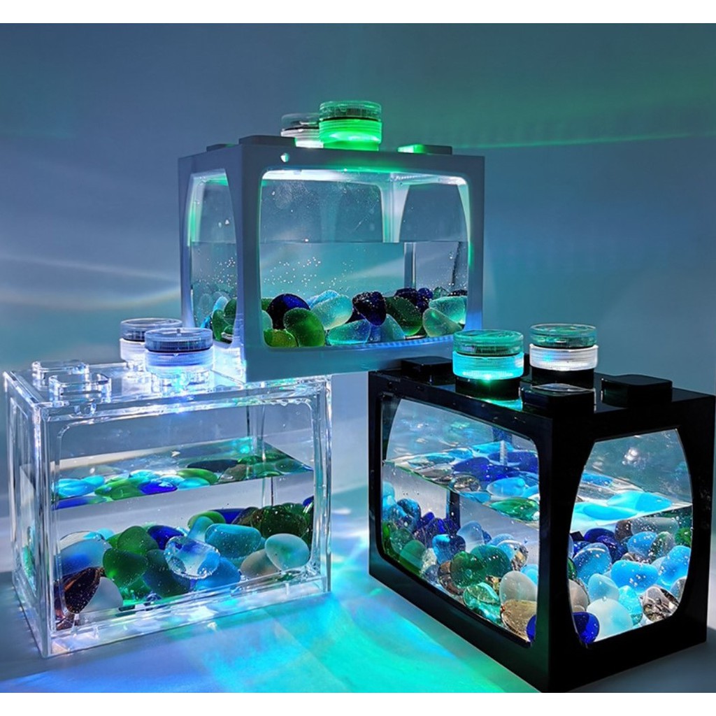 PET1004 Led Light Aquarium Fish Tank Mini Lego Tank Betta Tank Guppy Tank Bekas Ikan Laga Lampu Aquarium