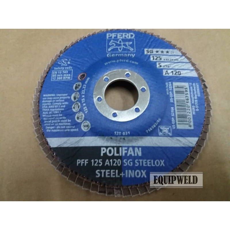 PFERD POLIFAN 5" FLAP WHEEL DISC 10PCS (PFF125 SG SG + PSF STEELOX STEEL+INOX) A40 A60 A80 A100 A120 Z40 ALUMINIUM OXIDE