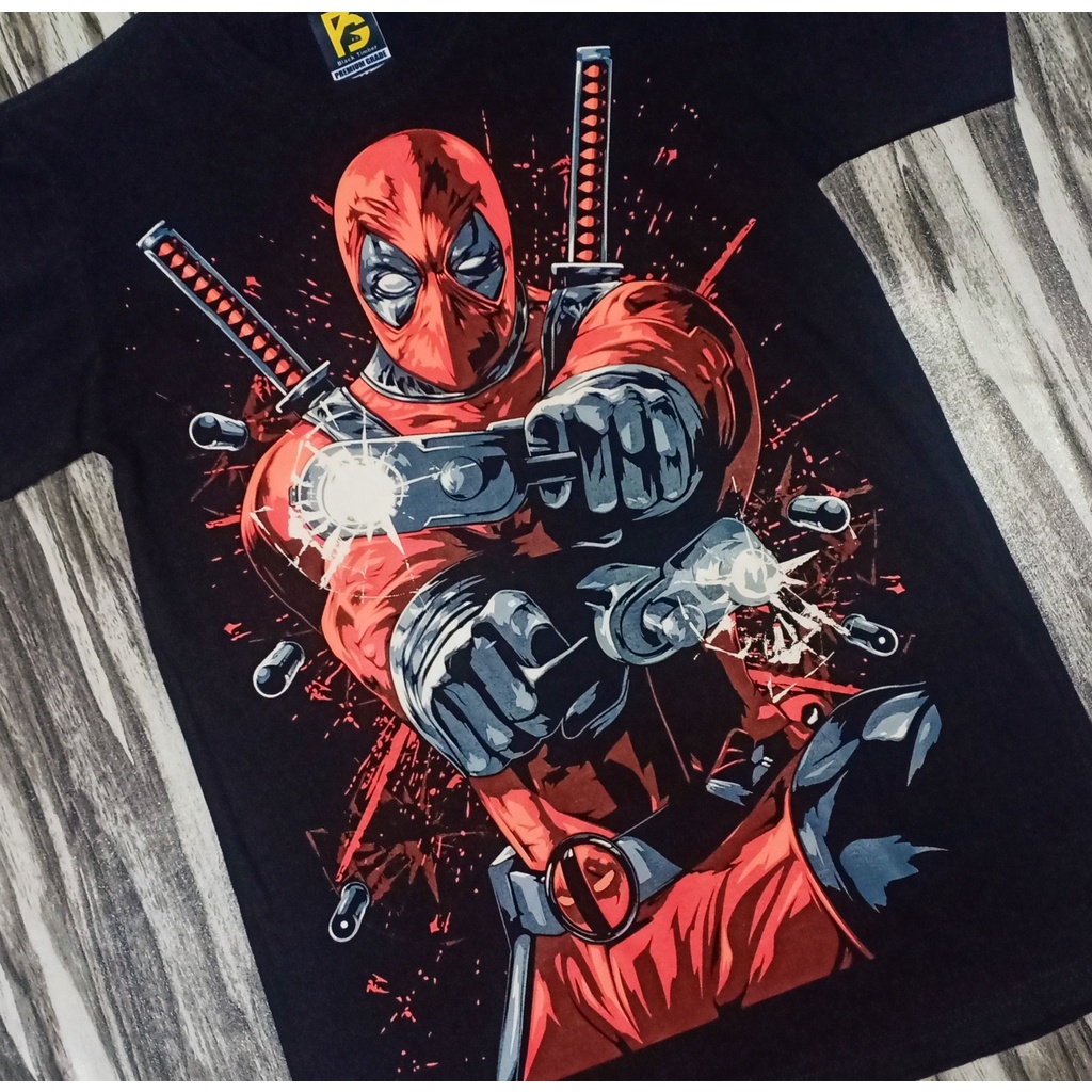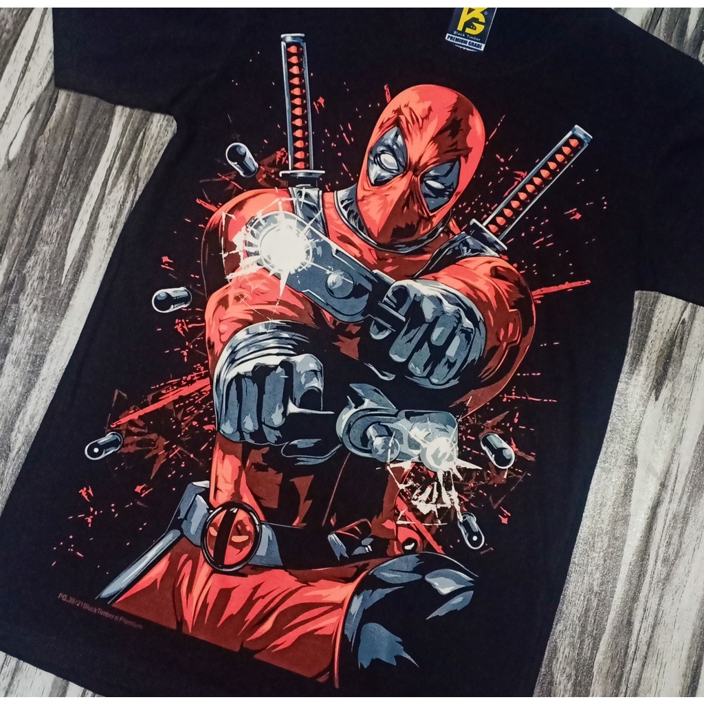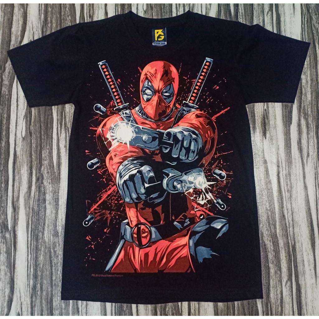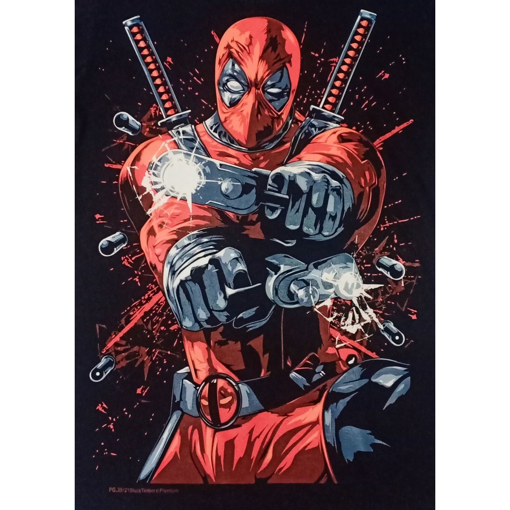 PG39 DEADPOOL DOUBLE BARREL GUN SLINGER DC COMIC SUPERHERO MOVIE FLIX ORIGINAL PREMIUM GRADE BLACK TIMBER COTTON T-SHIRT