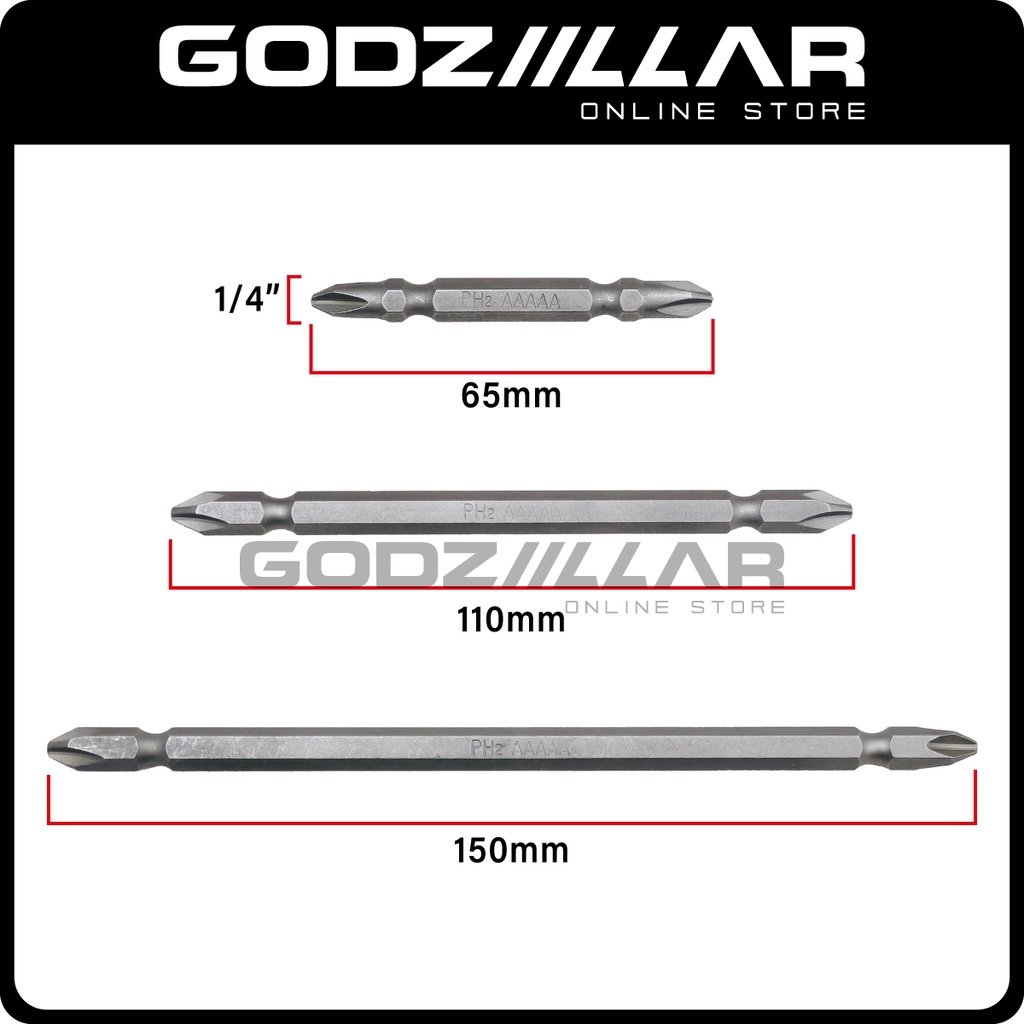 PH2 Screwdriver Bit | S2 Hex Shank Philips Head Screw Bit | 65mm & 110mm & 150mm | Mata Pasang Ikat Skru