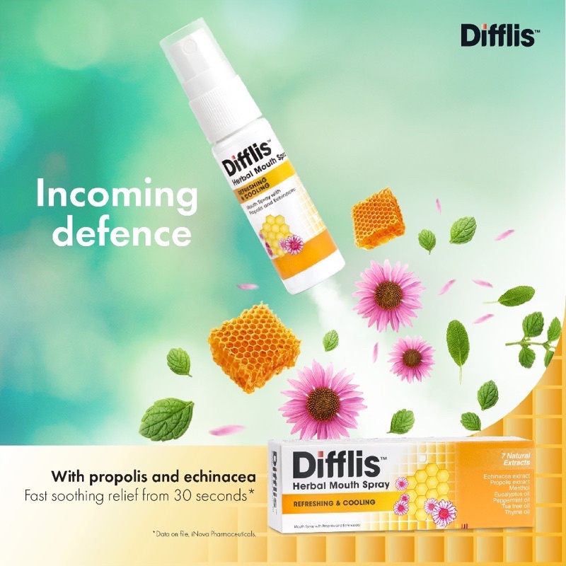 PHARMart Difflis/Difflam Herbal Propolis Echinacea Throat & Mouth Spray Boost Immune Defences, Refreshing & Fast Cooling