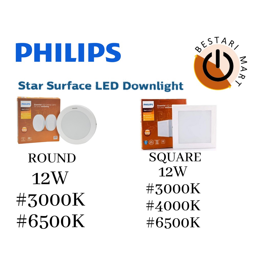 PHILIPS 12W LED STAR SURFACE DOWNLIGHT (ROUND / SQUARE)