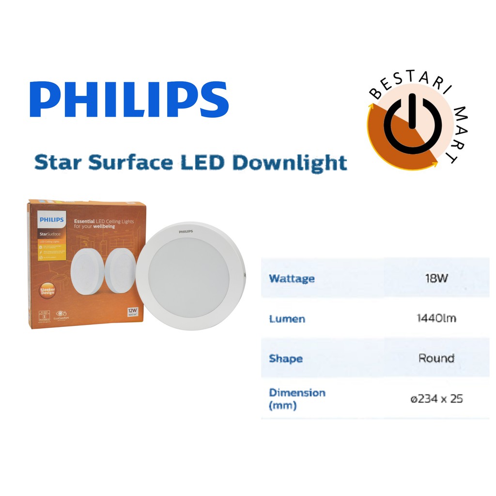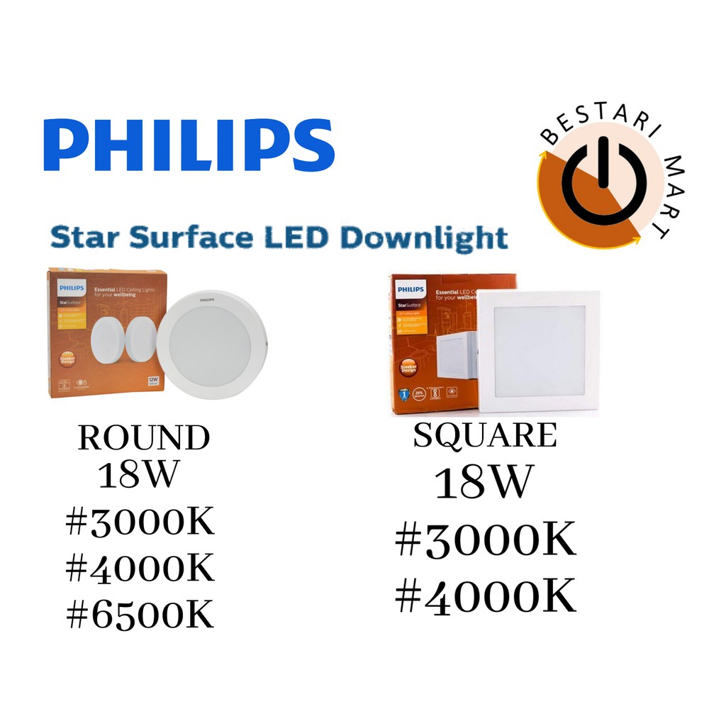 PHILIPS 18W LED STAR SURFACE DOWNLIGHT (ROUND / SQUARE)