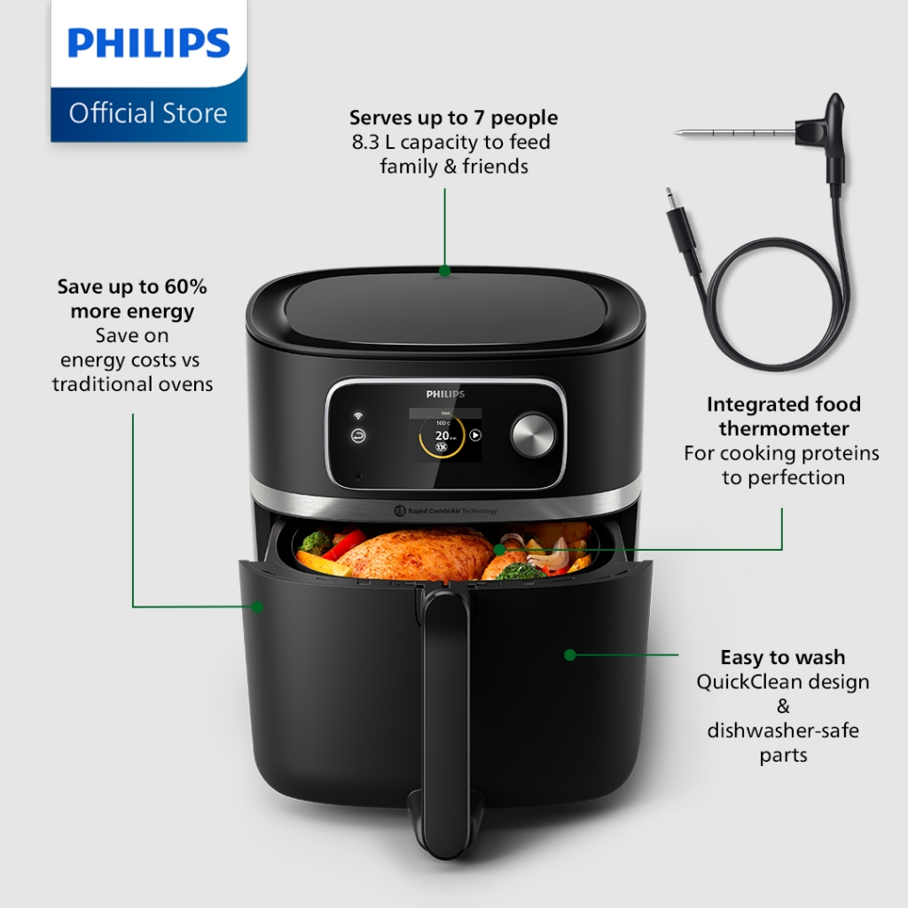 PHILIPS 7000 Series 22-in-1 Airfryer Combi XXL Connected - HD9880/90 Thermometer, Roast, Bake, SousV