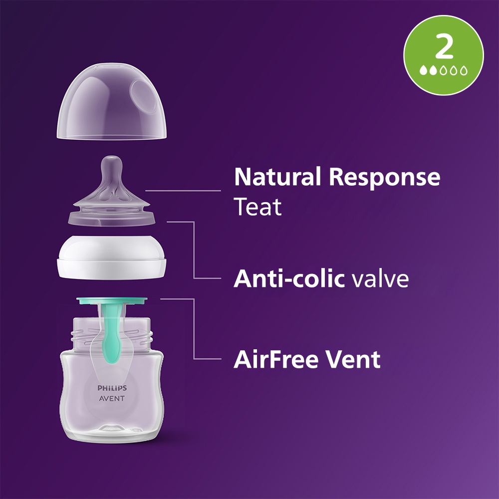 [New] Philips Avent Natural Response Baby Bottle with Airfree Vent 0m+ (4oz/125ml x 2 bottles) SCY670/02