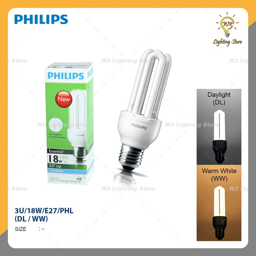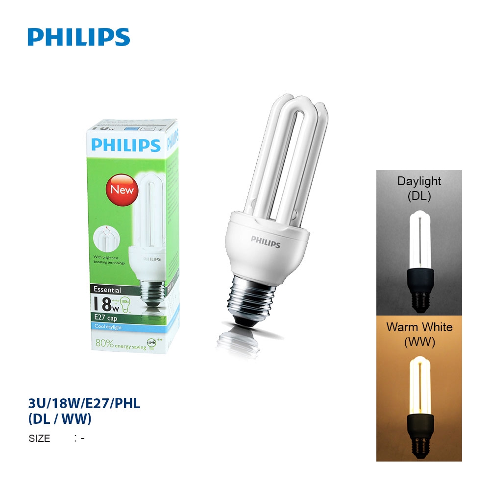 PHILIPS ESSENTIAL 3U 18W E27 BULB DL/WW