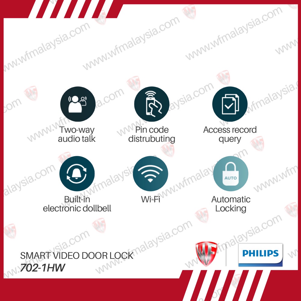 PHILIPS Easy key Digital Lock 702-1HW New Smart Video Door Lock Free Installation (3 Years Warranty)