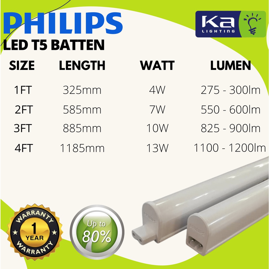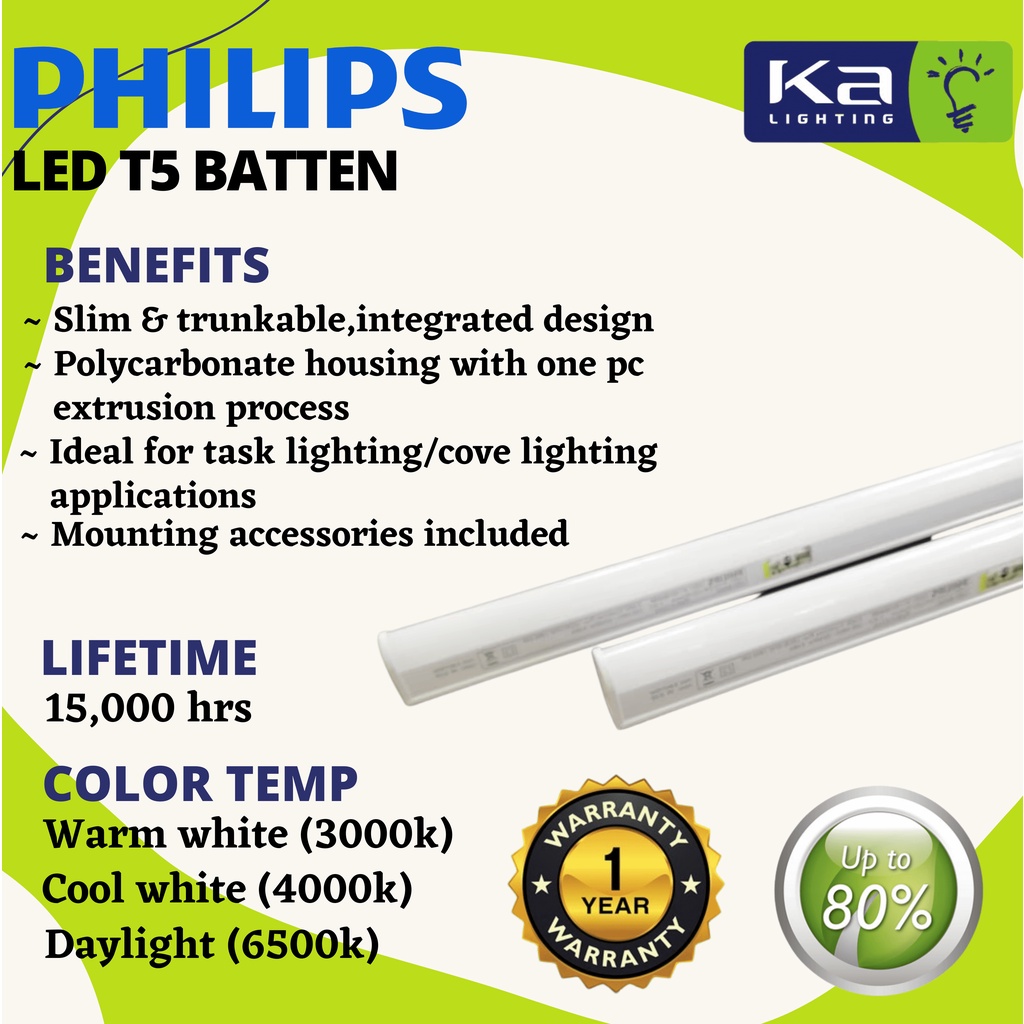 PHILIPS LED T5 Tube Light Drop Curve Light LampuCeiling Light1ft/2ft/3ft/4ft [4W/7W/10W/13W] Trunklinea Plus(Sirim)