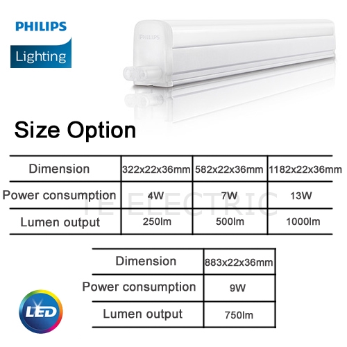 PHILIPS T5 LED BATTEN 1FT/2FT/3FT/4FT TRUNKLINEA 4W 7W 9W 13W COMPLETE SET WITH CONNECTOR AND CLIPS 3000K/4000K/6500K