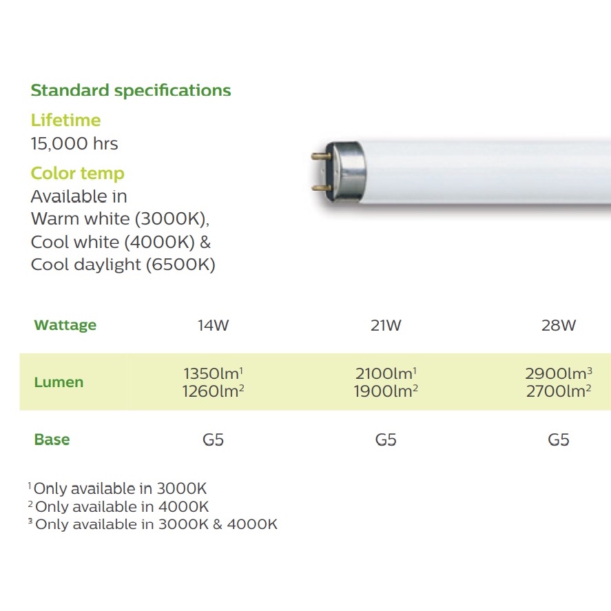 PHILIPS TL5 Essential Fluorescent Tube 14W/21W/28W (830/840/865) Warm White/Cool White/Cool Daylight (cupex)