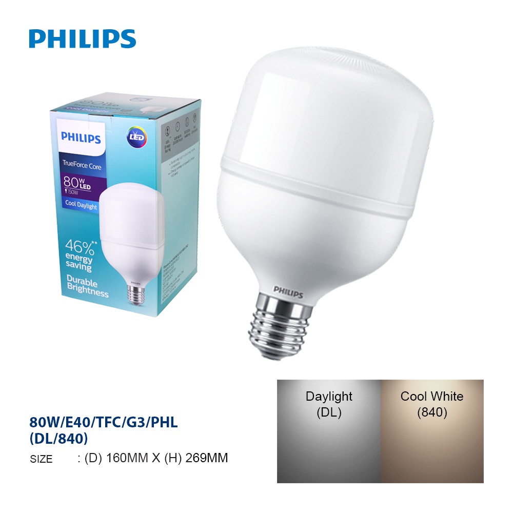 PHILIPS TRUEFORCE CORE 50W/80W E40 INDUSTRIAL HIGH BAY LED BULB