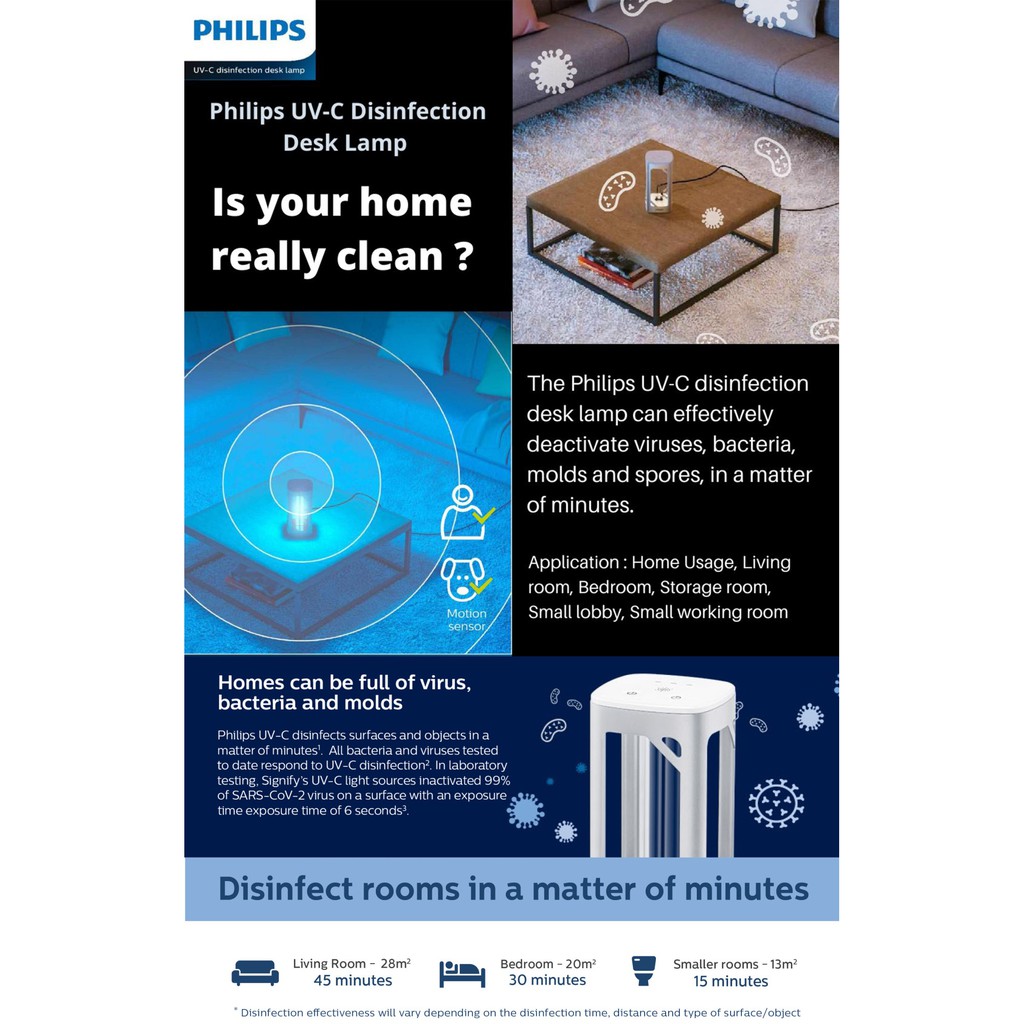 PHILIPS UVC DISINFECTION DESK LAMP 24W WITH SAFETY MOTION DETECT CUT OFF UV LIGHT ORIGINAL ENGLISH VER (1 YEAR WARRANTY)
